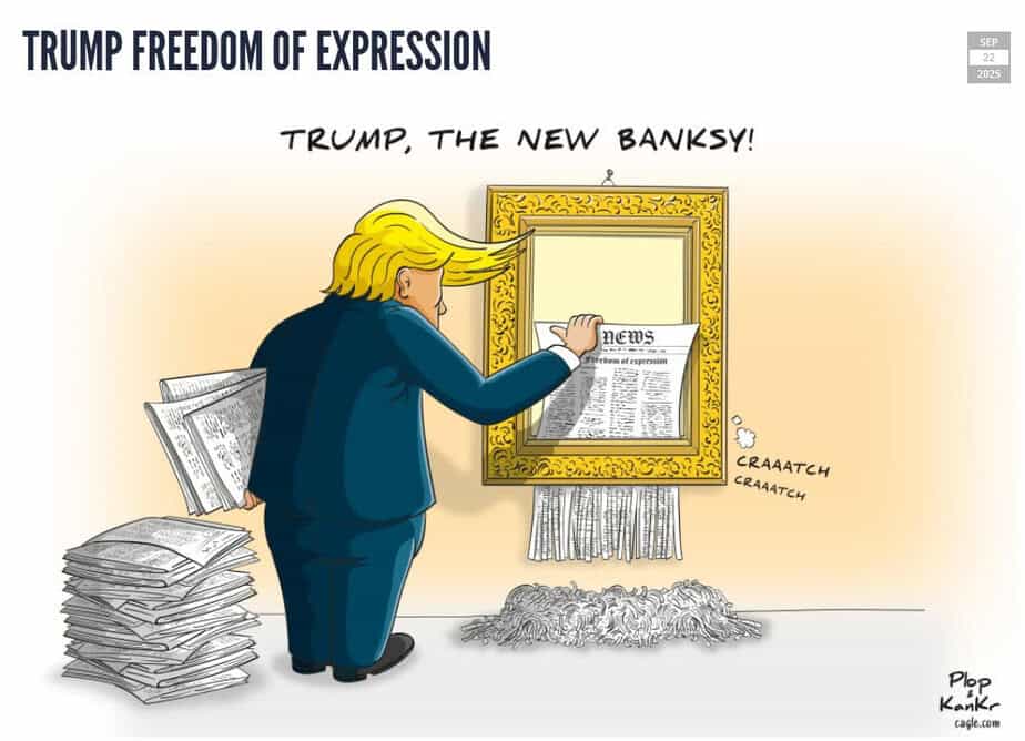 Gosh, I’m really glad that someone put large headlines on each political cartoon explaining what it’s all about. Otherwise, how could we know? They’re way too subtle for us to understand.