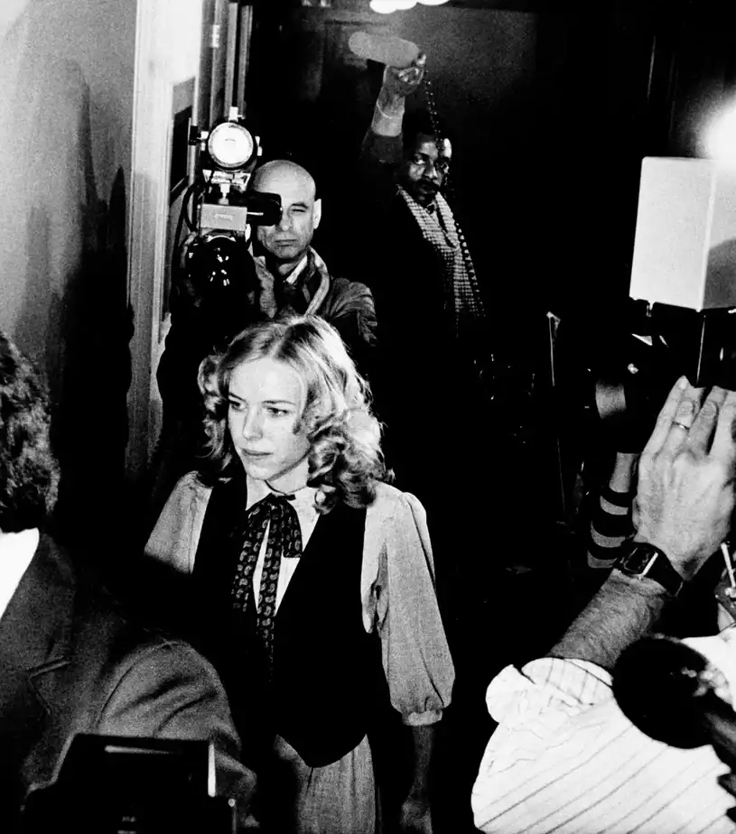 Greta Rideout arrives in court to testify against her husband, whom she has accused of rape, at his trial. The trial made national headlines since John Rideout was the first man in U.S. history to be charged with raping his wife while they were living together (Oregon, 1978).