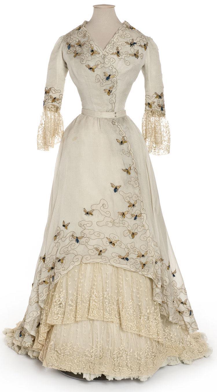 10. An exquisitely embroidered day dress with artfully arranged bees and swirling clouds by Jacques Doucet (ca. 1900-05)