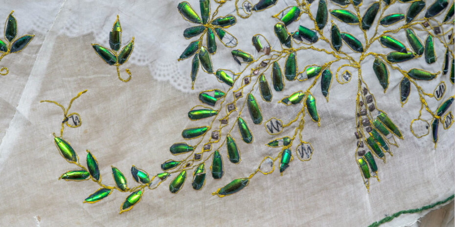 3. Beetle wings were used in embroidery for dresses during the Victorian Era