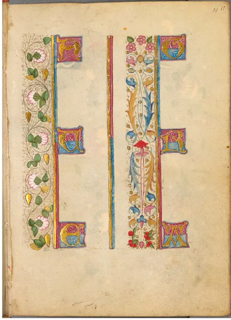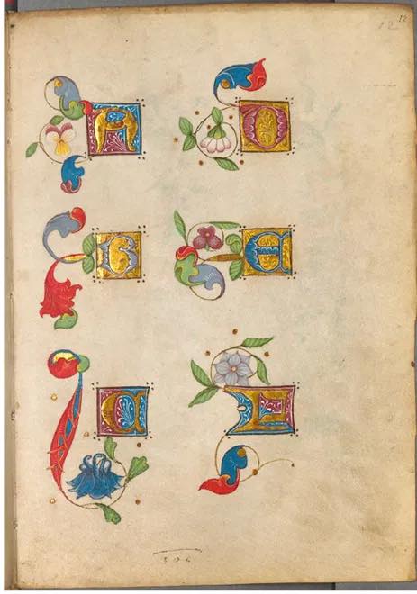 Selected pages from the Spätgotisches Musterbuch des Stephan Schriber, a manuscript which appears to be some kind of sketchbook, belonging to a fifteenth-century monk working in South-West Germany, where ideas and layouts for illuminated manuscripts were tried out and skills developed.